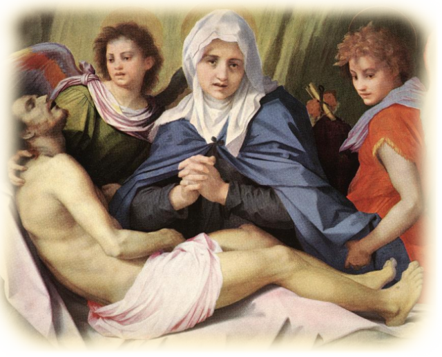 O Dio, tu hai voluto che la vita della Vergine fosse segnata dal mistero del dolore, concedici, ti preghiamo, di camminare con lei sulla via della fede e di unire le nostre sofferenze alla passione di Cristo perché diventino occasione di grazia e strumento di salvezza. Per Cristo Nostro Signore. Amen.